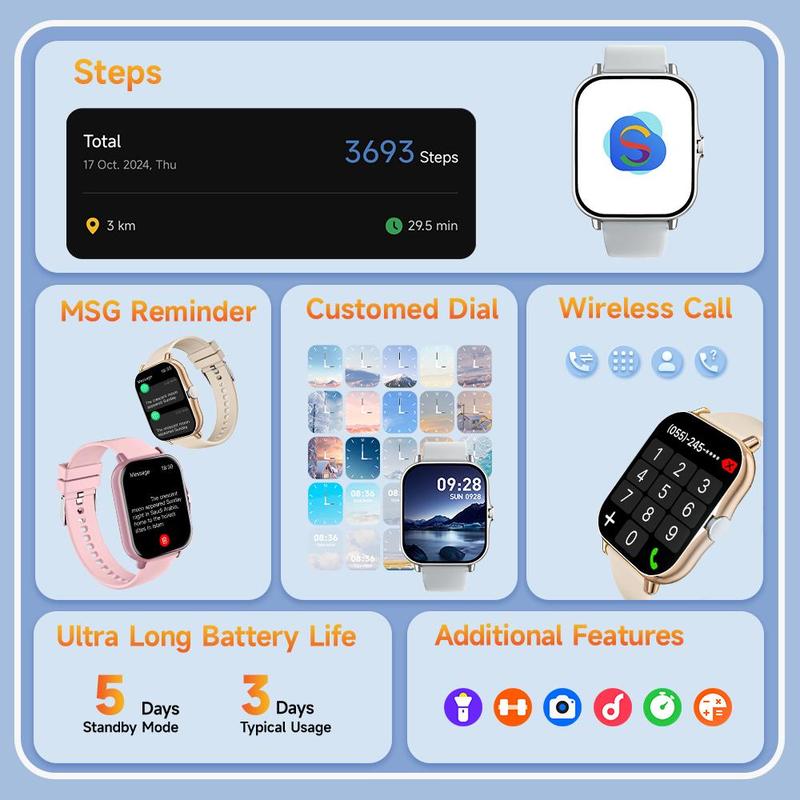 【Health Tracking】: Equipped with a pedometer and distance tracker for comprehensive monitoring of your daily fitness achievements.