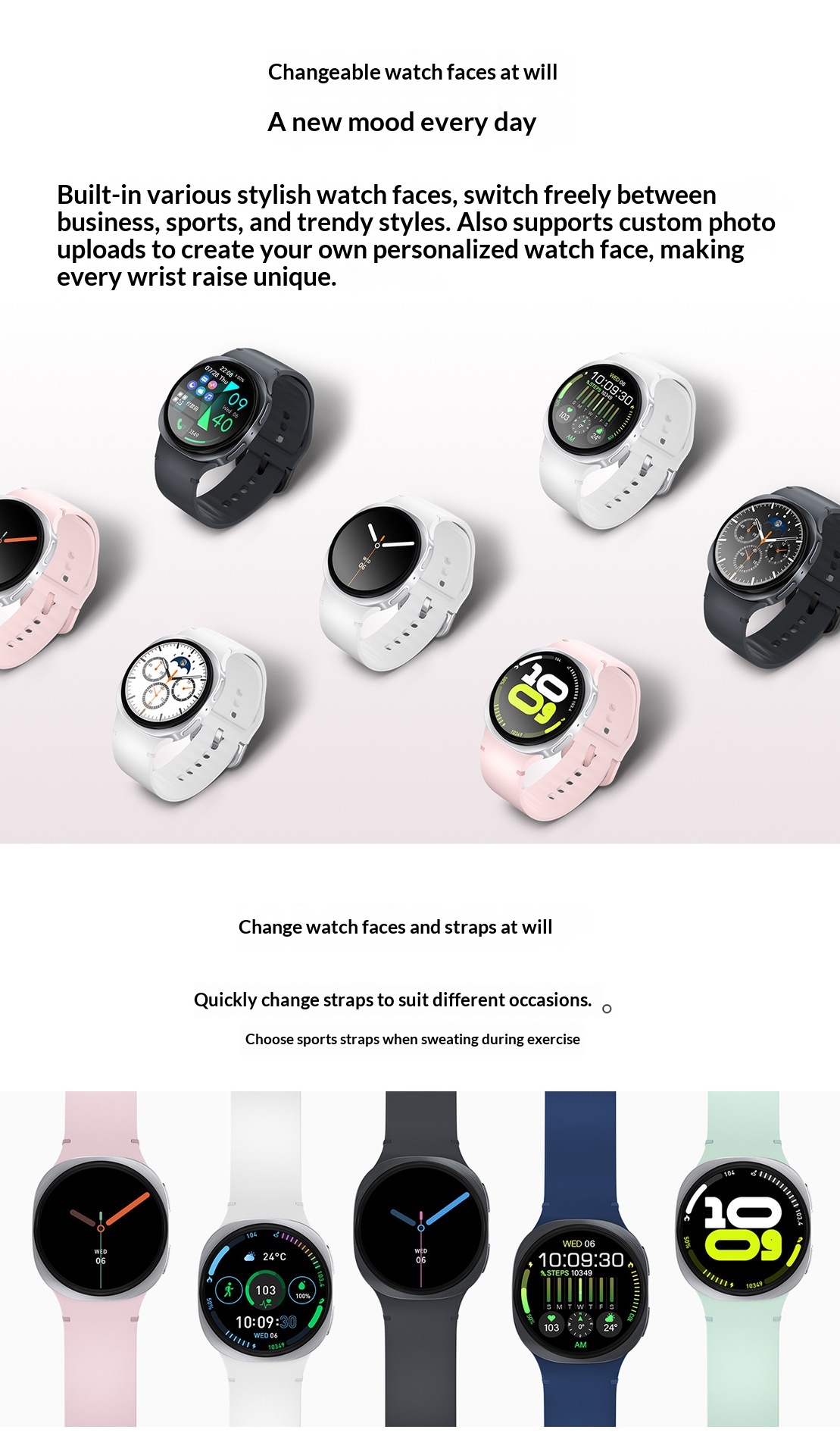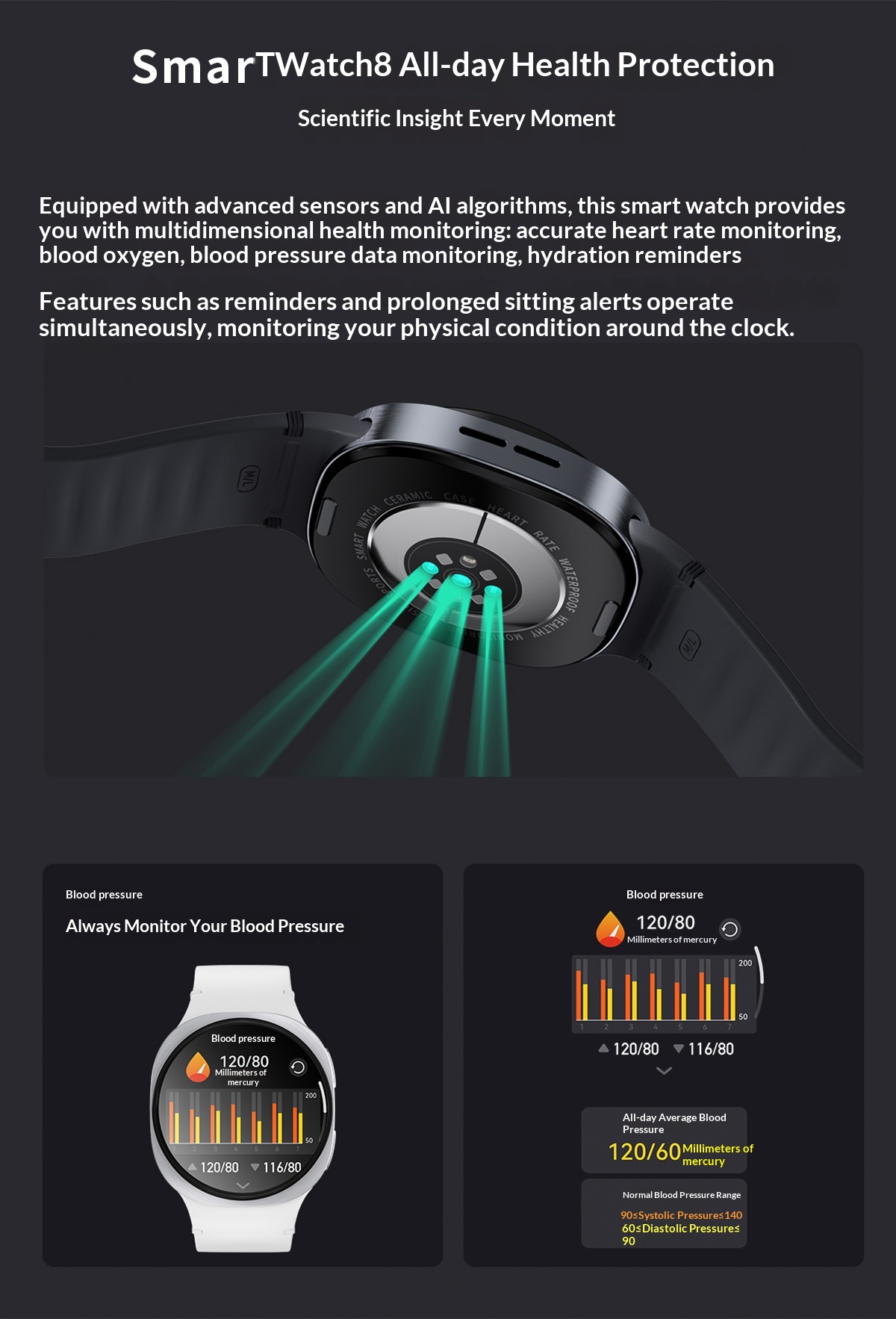 Features: Photo Capture, Step Counting, Heart Rate Monitoring, Blood Pressure Measurement, Social & Entertainment, Bluetooth Calling, Smart Notifications, Remote Selfie Control, Sleep Monitoring, Blood Oxygen Detection